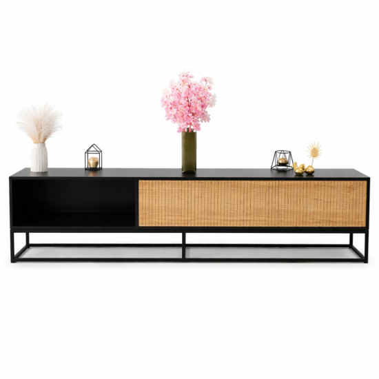 מזנון שוהם משלב אלגנטיות מודרנית עם חמימות טבעית ומרקם ייחודי. גוף שחור עמוק ומדויק יוצר נוכחות יוקרתית, בעוד חזית בגימור קלוע טבעי מעניקה טאץ’ אורגני ומרכך את המראה. זהו פריט שמחבר בין עיצוב אורבני מוקפד לבין השראה בוהו מודרנית.