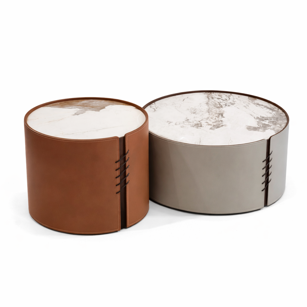 הסט כולל שני שולחנות סלון בגדלים שונים המאפשרים שימוש גמיש ונוח. ניתן להציב אותם יחד כסט מרכזי המעניק עומק ועניין לחלל, או להפריד ביניהם ולמקם כל שולחן באזור אחר בבית בהתאם לצורך.