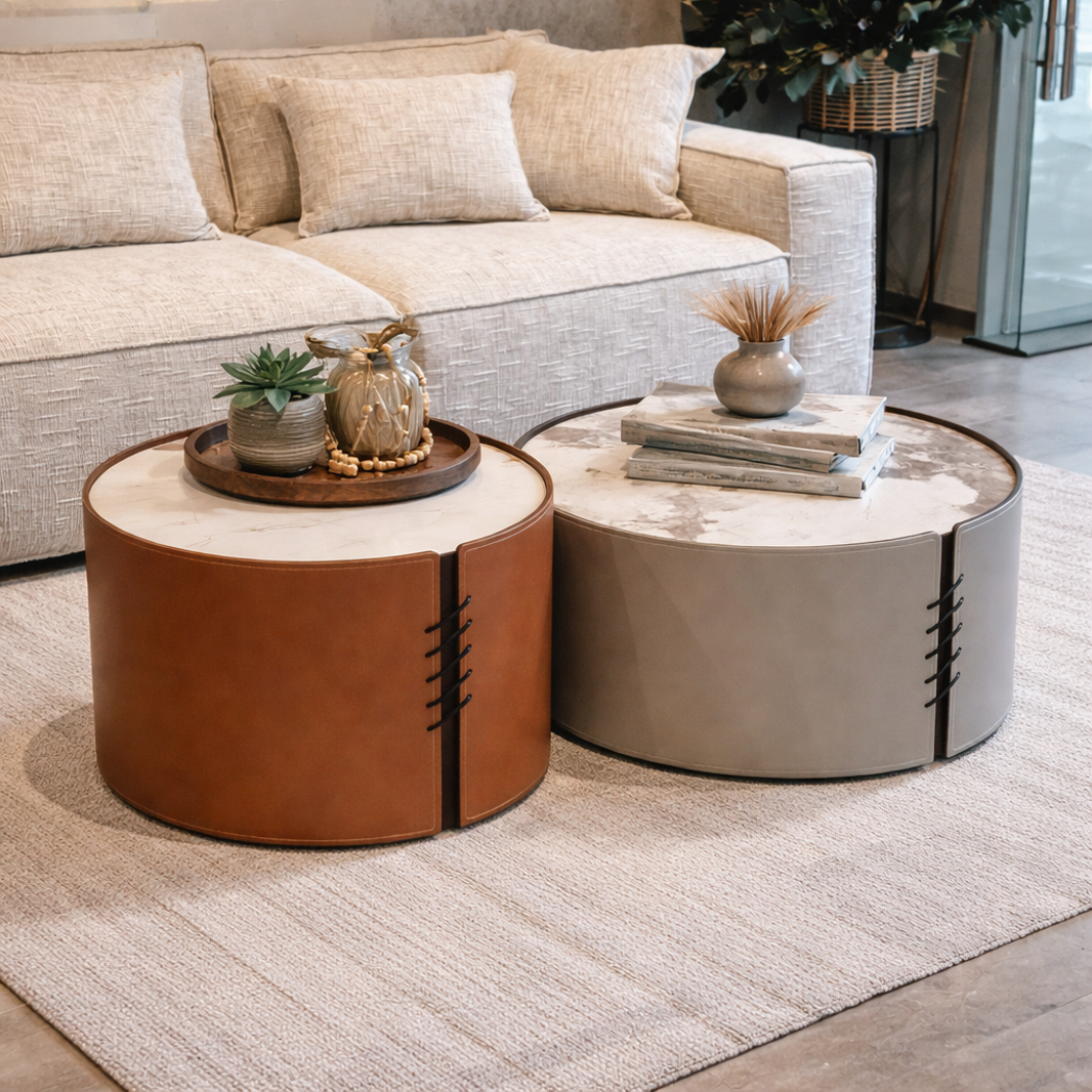 השולחן הגדול מתאים להצבת חפצי נוי, מגזינים, כיבוד או פריטי עיצוב שונים, בעוד השולחן הקטן יכול לשמש כשולחן צד נוח ונגיש ליד הספה או הכורסה. שילוב זה מאפשר ניצול חכם של החלל לצד שמירה על מראה נקי ומעוצב.