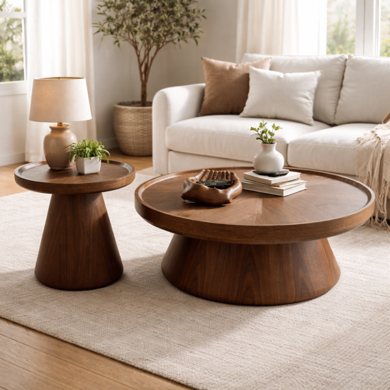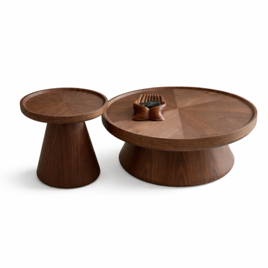 הבסיסים הקוניים של השולחנות מעניקים יציבות מלאה לצד מראה פיסולי ייחודי. העיצוב המיוחד הופך את השולחנות לא רק לפריט פונקציונלי אלא גם לאלמנט דקורטיבי מרכזי בחלל הסלון.