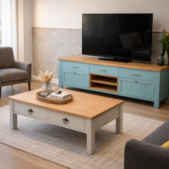הגוון הייחודי של גוף השולחן מוסיף לחלל תחושת רעננות וסטייל, ומאפשר ליצור סלון מעוצב עם טאץ' צבעוני ועדין שאינו משתלט על החלל אלא משתלב בו בצורה טבעית.