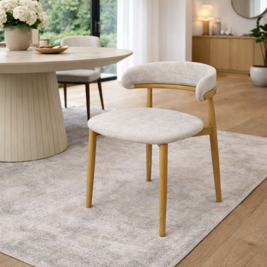 כיסא ויקטוריה מציג עיצוב אלגנטי ונעים לעין המשלב קווים מעוגלים עם מראה טבעי וחמים. הכיסא מתאים באופן מושלם לפינות אוכל מודרניות, לחללי אירוח מעוצבים ולמטבחים פתוחים. השילוב בין מושב מרופד בבד איכותי לבין רגליים בגימור עץ יוצר מראה מעודן שמוסיף אופי וסטייל לכל חלל.